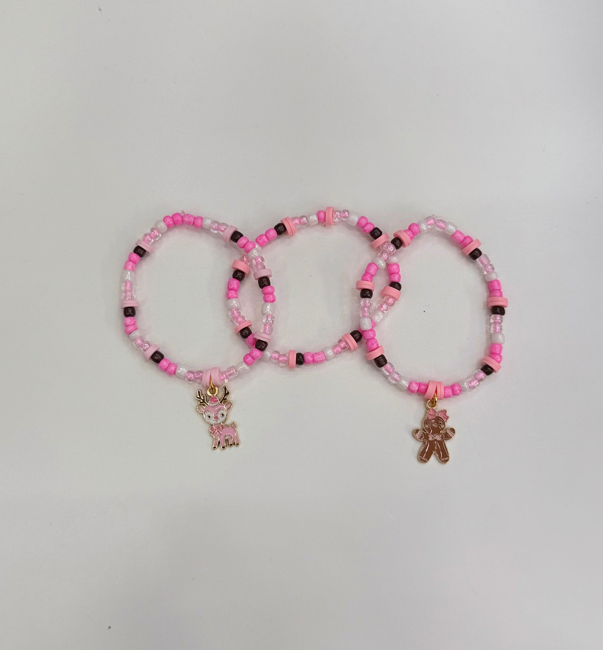 Pink gingerbread & deer bracelet set (3)